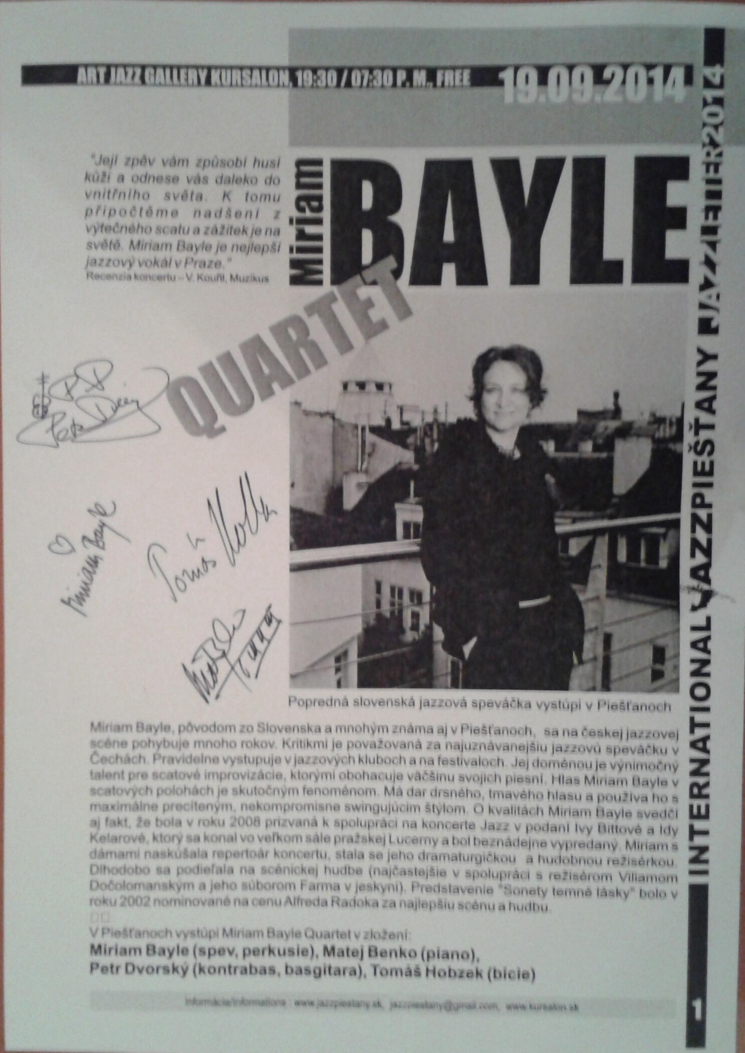 “Nejlepší jazzový vokál v Praze“ – Muzikus, V. Kouřil