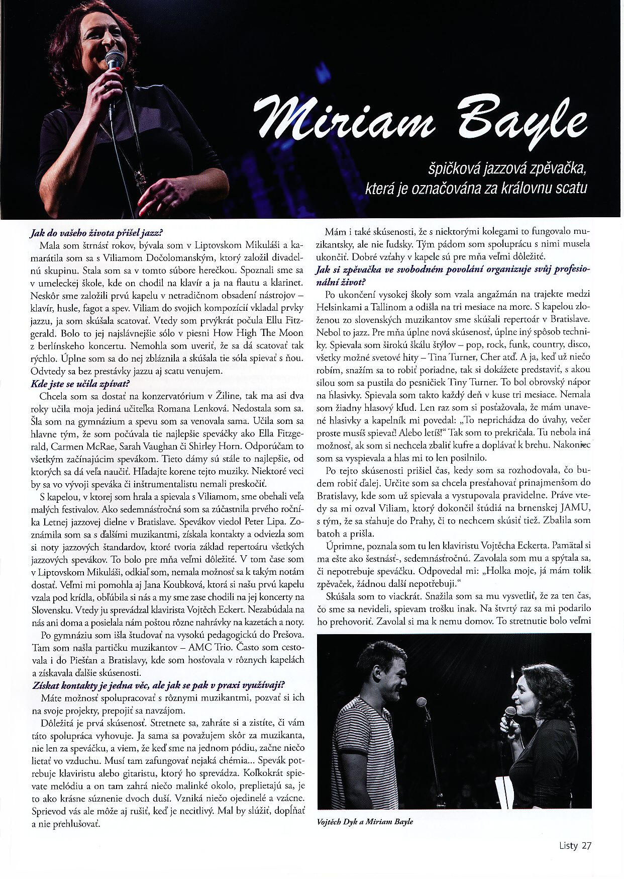 “Nejlepší jazzový vokál v Praze“ – Muzikus, V. Kouřil